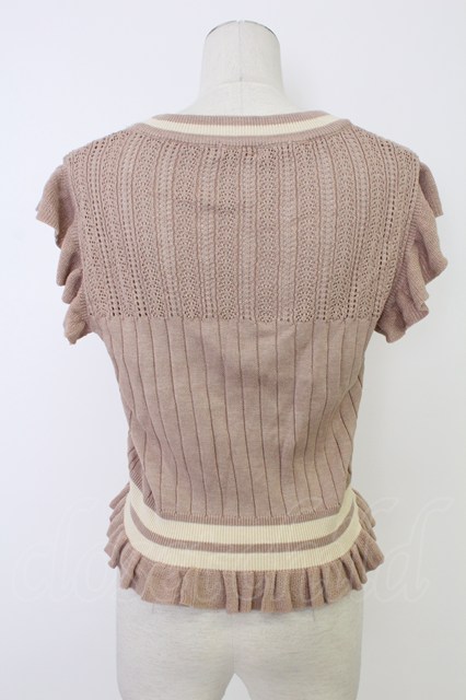 axes femme POETIQUE / Vネックニットノースリーブトップス ピンクX白 T-25-12-17-014-AX-TO-SA-ZT [2100060000029740-T-25-12-17-014-AX-TO-SA-ZT]