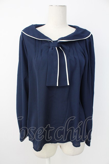 axes femme / パイピングブラウス ネイビー T-25-12-17-016-AX-BL-SA-ZT [2100060000029739-T-25-12-17-016-AX-BL-SA-ZT]