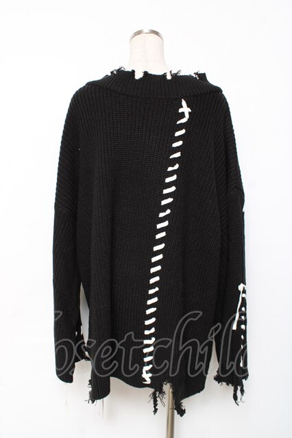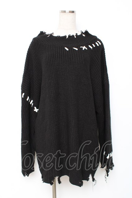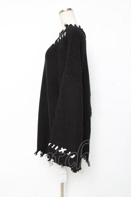 axes femme / ロングステッチダメージニット F 黒 Y-25-12-10-035-AX-TO-SZ-ZY