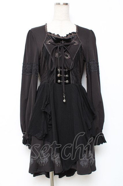 Ozz oneste / 裾シャンデリアプリントワンピース 黒 Y-25-12-10-045-OO-OP-SZ-ZY [2100070000056214-Y-25-12-10-045-OO-OP-SZ-ZY]