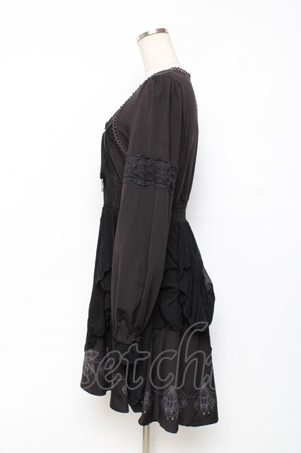 Ozz oneste / 裾シャンデリアプリントワンピース 黒 Y-25-12-10-045-OO-OP-SZ-ZY