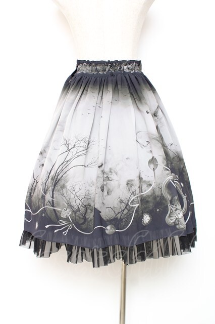 abilletage / ヴィランズ柄シフォンスカート(ミディアム) 黒 Y-25-12-10-080-GO-SK-SZ-ZY