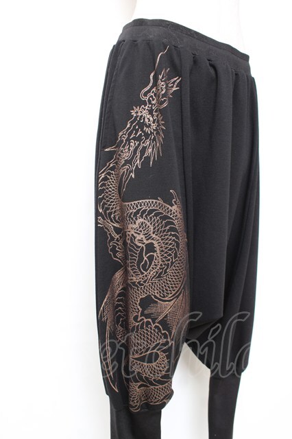 Qutie Frash / ドラゴンプリントサルエルパンツ 黒 Y-25-12-10-083-QU-PA-SZ-ZY [2100070000055942-Y-25-12-10-083-QU-PA-SZ-ZY]