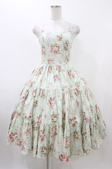 K211148 / 薔薇柄タックジャンパースカート Free ミント H-25-12-16-1029-0-OP-NS-ZH [2100030000080867-H-25-12-16-1029-0-OP-NS-ZH]