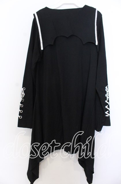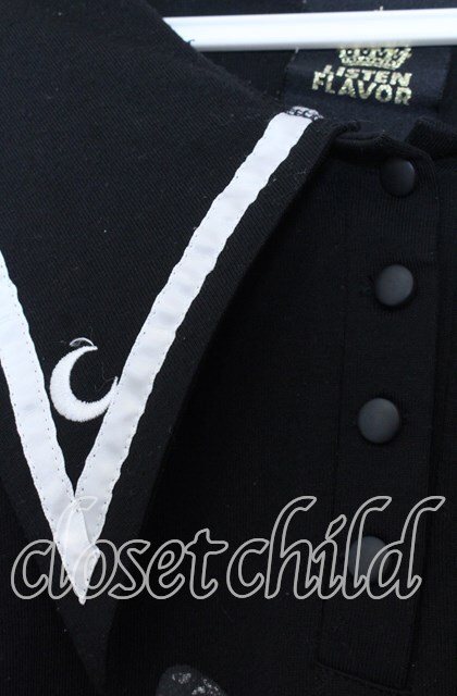 LISTEN FLAVOR / 薔薇と黒猫のコウモリセーラーワンピ ブラック×ホワイト O-25-12-10-029-PU-OP-IG-OS [2100080000067631-O-25-12-10-029-PU-OP-IG-OS]