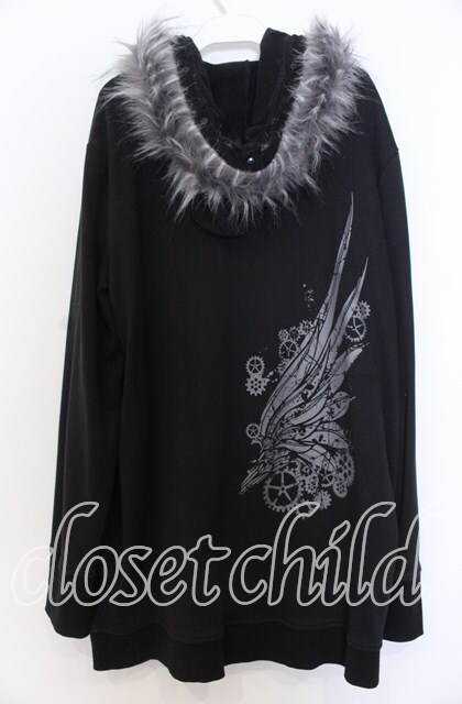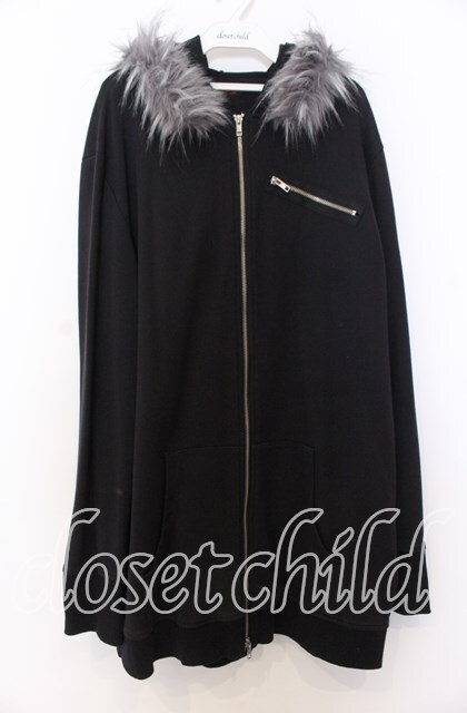 Deorart / アンティーク片翼プリントファー付裏毛2WAYパーカー ブラック×ホワイト O-25-12-10-028-PU-TO-IG-OS