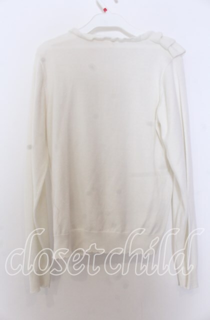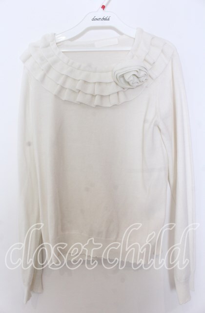 PINK HOUSE / フラワーモチーフブローチ付きフリルニット シロ O-25-12-10-034-LO-TO-IG-OS