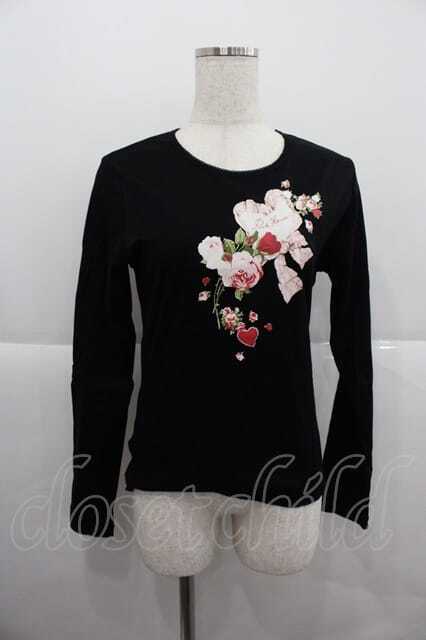 PINK HOUSE / オーナメントローズプリントカットソー 黒XピンクX白 I-25-12-09-012-LO-TO-SA-ZI [2100060000047453-I-25-12-09-012-LO-TO-SA-ZI]