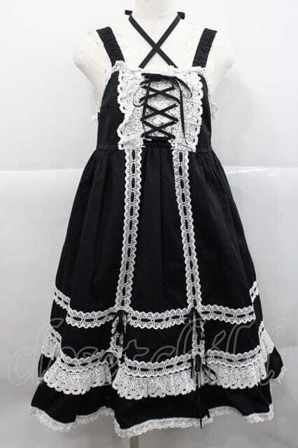 BABY,THE STARS SHINE BRIGHT / ベビードールジャンパースカート 黒X白 I-25-12-09-048-BA-OP-SA-ZI [2100060000047495-I-25-12-09-048-BA-OP-SA-ZI]