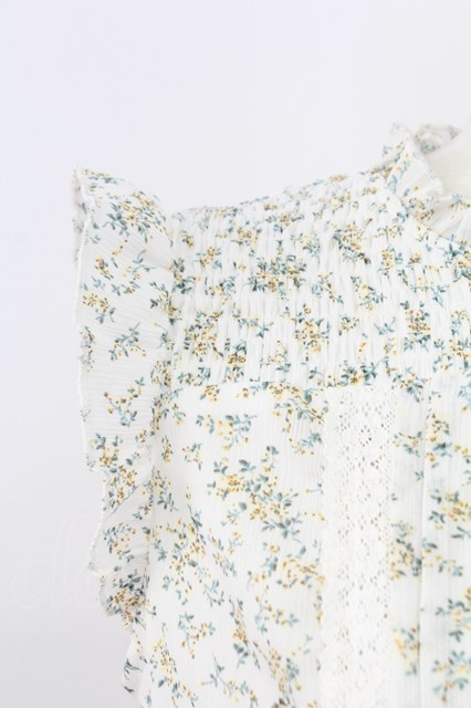 axes femme / ベルト付花柄ノースリブラウス M ホワイト T-25-12-11-002-AX-BL-SA-ZT [2100060000041055-T-25-12-11-002-AX-BL-SA-ZT]