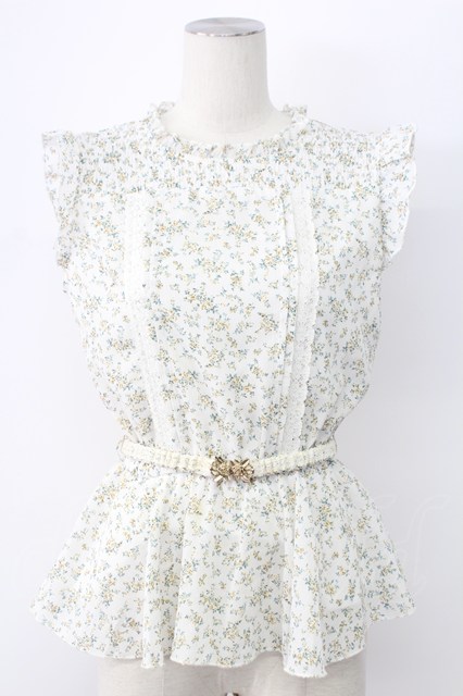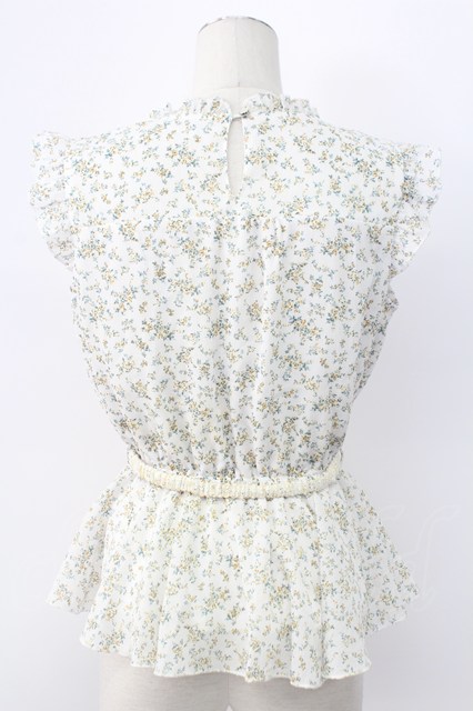 axes femme / ベルト付花柄ノースリブラウス M ホワイト T-25-12-11-002-AX-BL-SA-ZT