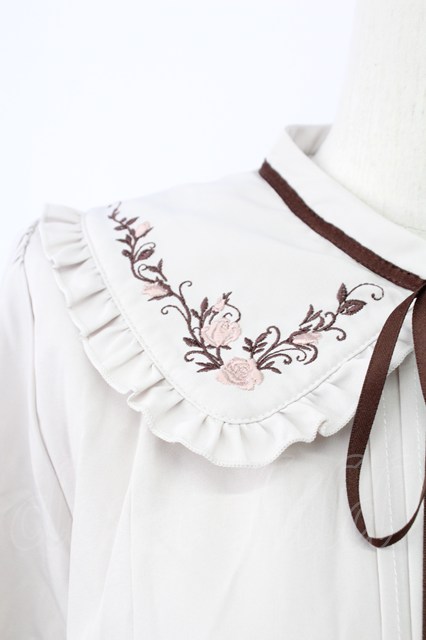 axes femme / ブーケ刺繍フリル襟ブラウス L ベージュ T-25-12-11-012-AX-BL-SA-ZT [2100060000041108-T-25-12-11-012-AX-BL-SA-ZT]