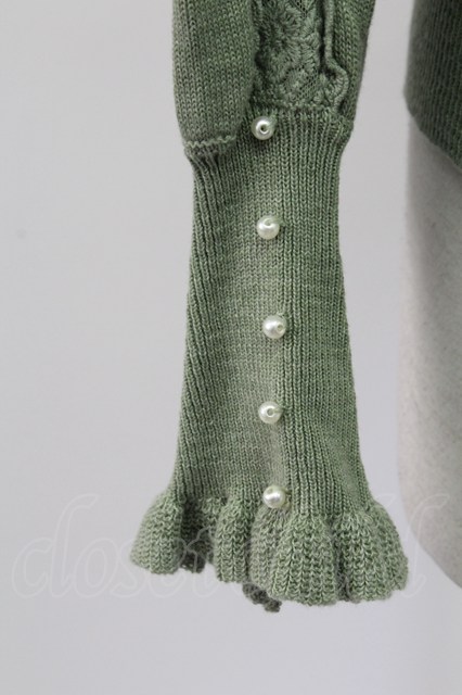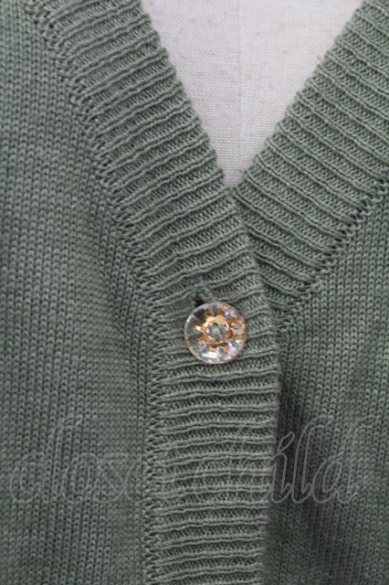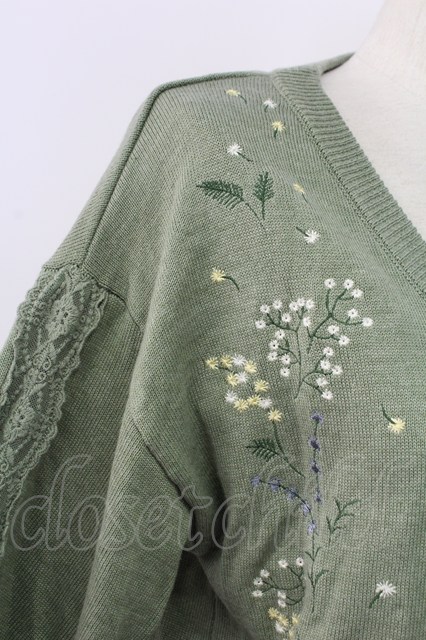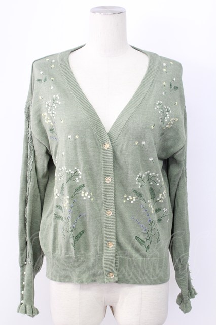 axes femme / ミモザ刺繍ニットカーディガン M グリーン T-25-12-11-016-AX-TO-SA-ZT
