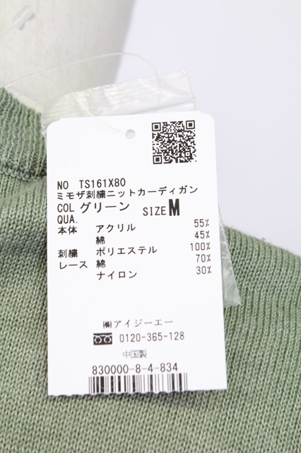 axes femme / ミモザ刺繍ニットカーディガン M グリーン T-25-12-11-016-AX-TO-SA-ZT [2100060000041048-T-25-12-11-016-AX-TO-SA-ZT]