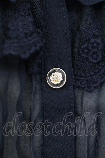 axes femme / レーシープリーツブラウス M ネイビー T-25-12-11-024-AX-BL-SA-ZT