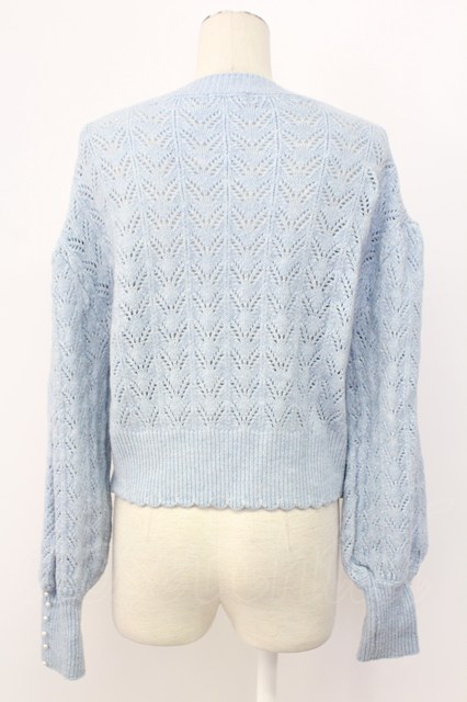 axes femme / 透かし編みふわふわニットカーディガン サックス T-25-12-11-030-AX-TO-SA-ZT [2100060000041062-T-25-12-11-030-AX-TO-SA-ZT]
