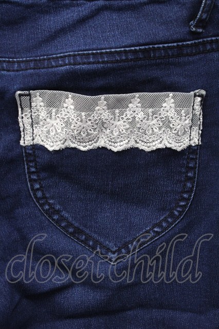 axes femme / パール&刺繍裾レースデニムパンツ S ブルー T-25-12-11-050-AX-PA-SA-ZT
