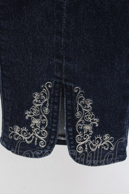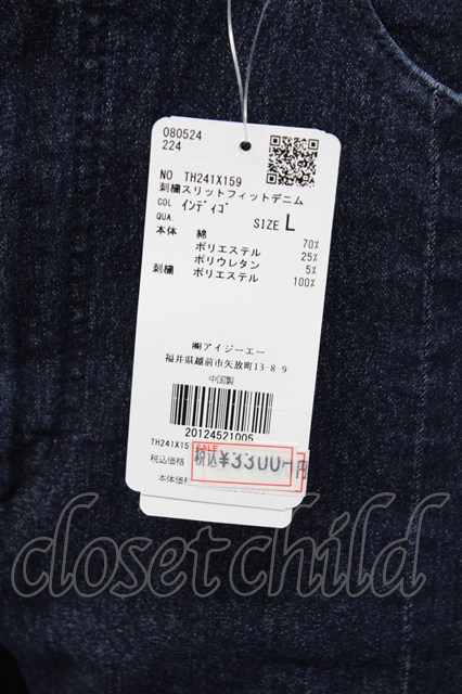 axes femme / 刺繍スリットフィットデニム L インディゴ T-25-12-11-053-AX-PA-SA-ZT