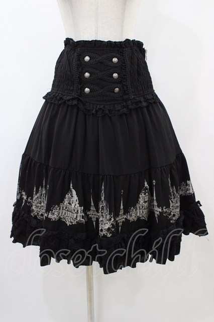 Ozz oneste / プリントハイウエストスカート ブラック H-25-12-18-1039-OO-SK-KB-ZH