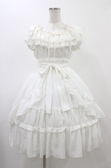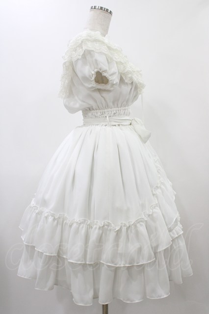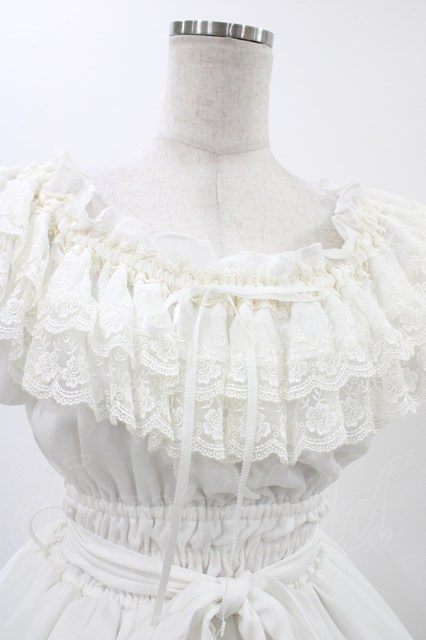 Millefleurs / レースとジョーゼットのワンピース ホワイト H-25-12-18-1025-EL-OP-KB-ZH