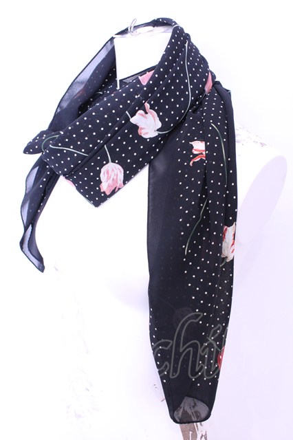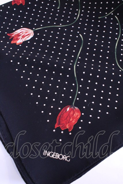 INGEBORG / ドットチューリップストール クロ O-25-12-11-1033-LO-ZA-IG-OS