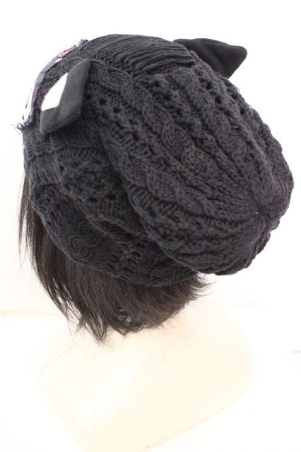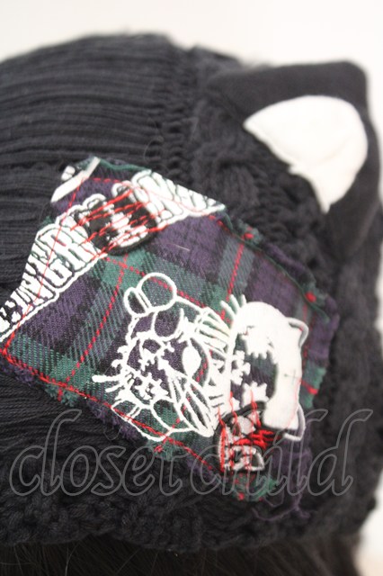 HANGRY&ANGRY / ワッペン付き猫耳ニットキャップ ブラック O-25-12-11-1043-HN-AC-OW-OS