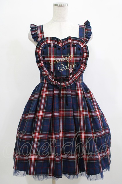 Ank Rouge / チェックハートフリルジャンパースカート M ネイビー H-25-12-19-016-CA-OP-NS-ZH