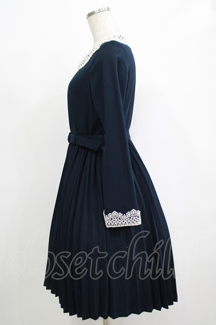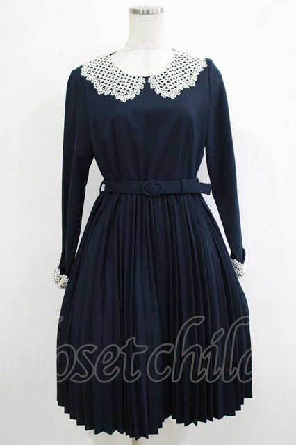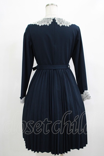 Fi.n.t / レース衿アコーディオンプリーツワンピース Free ネイビー H-25-12-19-030-CA-OP-NS-ZH