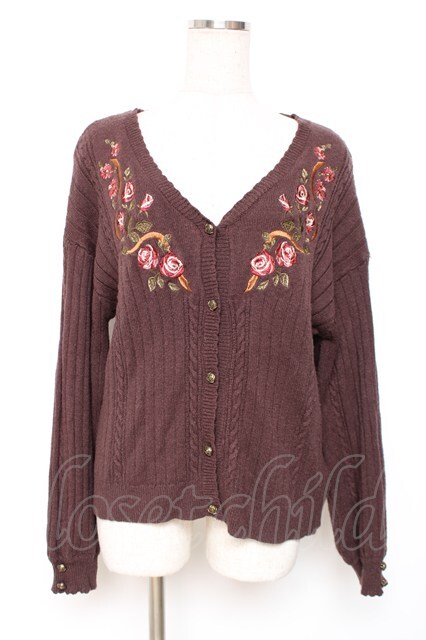 axes femme / ガーデニング刺繍カーディガン ブラウン Y-25-12-11-013-AX-TO-SZ-ZY [2100070000056282-Y-25-12-11-013-AX-TO-SZ-ZY]