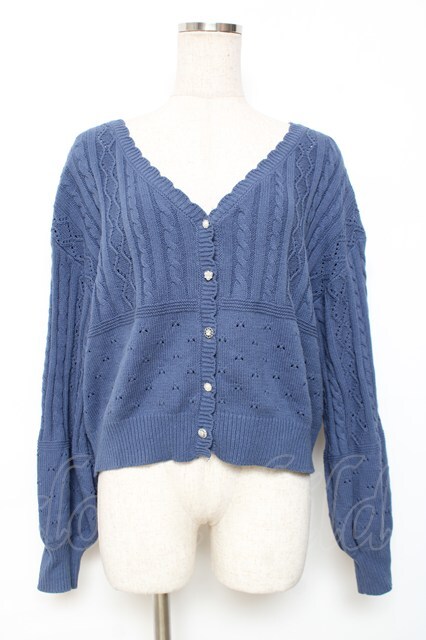 axes femme / 透かし編みニットカーディガン F ブルー Y-25-12-11-038-AX-TO-SZ-ZY