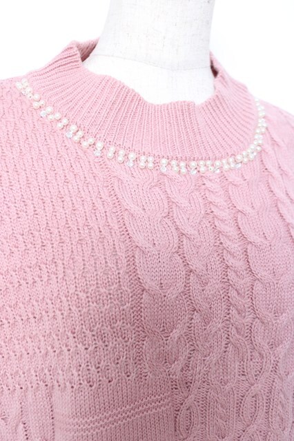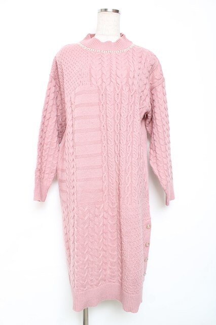 axes femme / ネックレス付ニットワンピース M ピンク Y-25-12-11-050-AX-OP-SZ-ZY