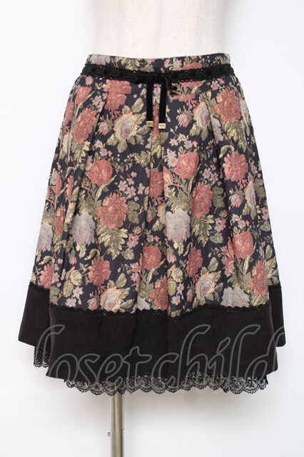 axes femme / 花柄スカート 黒 Y-25-12-11-086-AX-CO-SZ-ZY