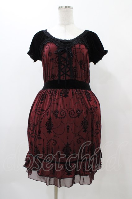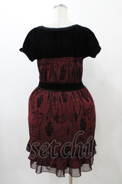 axes femme / ベロア切替ワンピース M ワイン H-25-12-19-1031-AX-OP-NS-ZH [2100030000080980-H-25-12-19-1031-AX-OP-NS-ZH]