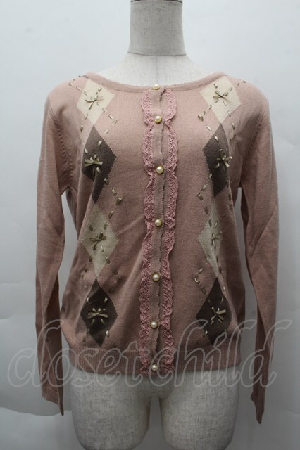 axes femme / アーガイル柄ニットカーディガン ピンク S-25-12-11-007-AX-TO-HR-ZS
