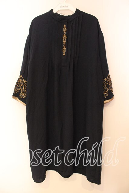 axes femme / 袖刺繍Aラインシャツワンピース ネイビー O-25-12-13-071-AX-OP-IG-OS