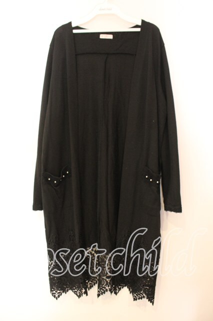 axes femme / 裾レースTPU天竺ロングカーディガン クロ O-25-12-13-073-AX-TO-IG-OS [2100080000067464-O-25-12-13-073-AX-TO-IG-OS]