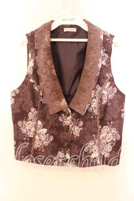 axes femme / グランブーケ柄レース襟ベスト ブラウン O-25-12-13-074-AX-TO-IG-OS