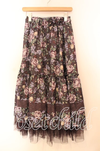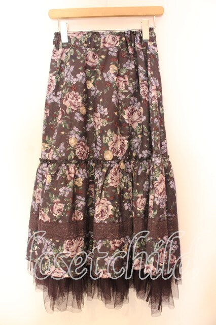 axes femme / ホーリーローズ柄フリルスカート Dブラウン系 O-25-12-13-081-AX-SK-IG-OS