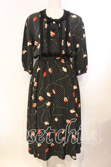 INGEBORG / ドットチューリップワンピース クロ O-25-12-13-017-LO-OP-IG-OS