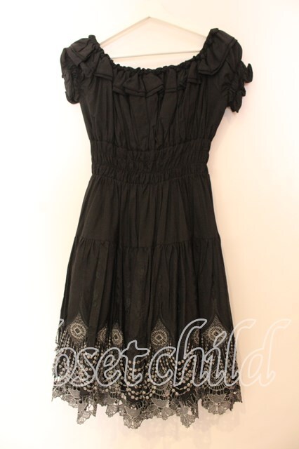 BPN / ラメレースシャーリングワンピース M ブラック O-25-12-13-065-GO-OP-IG-OS
