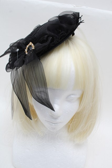 axes femme / リボンフリルミニハット 黒 S-25-12-12-033-AX-AC-HR-ZS