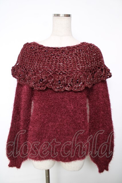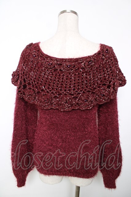 axes femme POETIQUE / 鈎針編み襟デザインニットプルオーバー M ワイン Y-25-12-13-006-AX-TO-SZ-ZY