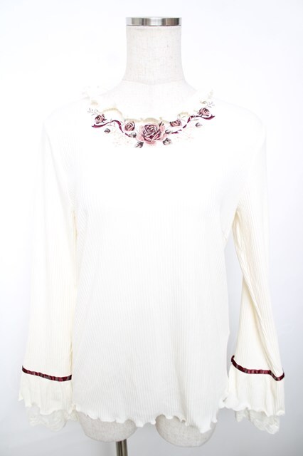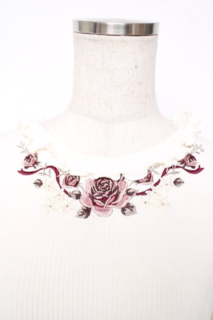 axes femme / 薔薇刺繍プチハイリブプルオーバー M ワイン Y-25-12-13-019-AX-TO-SZ-ZY