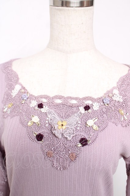 axes femme / ローズガーデン×蝶レースプルオーバー ピンク Y-25-12-13-034-AX-TO-SZ-ZY