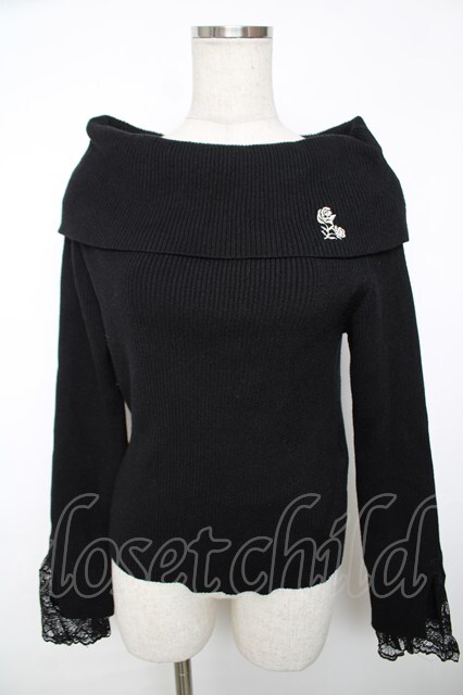 axes femme / ローズ刺繍オフショルニット F 黒 Y-25-12-13-046-AX-TO-SZ-ZY [2100070000038739-Y-25-12-13-046-AX-TO-SZ-ZY]