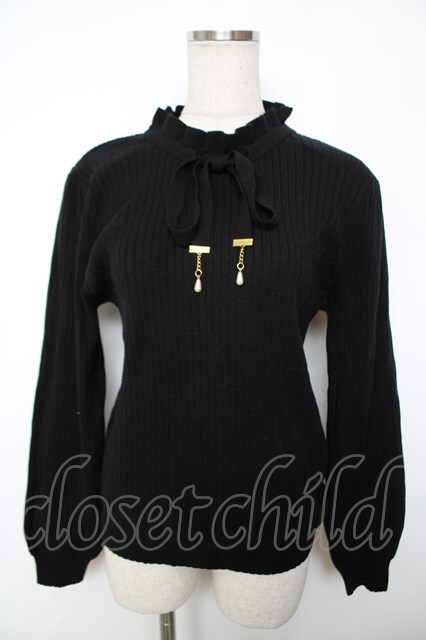 axes femme / リボン付きニット M 黒 Y-25-12-13-047-AX-TO-SZ-ZY