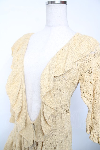 axes femme / ラッフルフリル鍵編みボレロ M イエロー Y-25-12-13-059-AX-TO-SZ-ZY