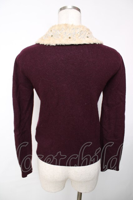 Jane Marple / ファーカラーのカーディガン M ワイン Y-25-12-13-090-JM-TO-SZ-ZY