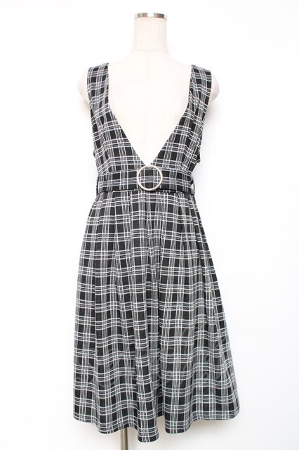 axes femme POETIQUE / ベルト付きチェックジャンパースカート M 黒 Y-25-12-13-110-AX-OP-SZ-ZY