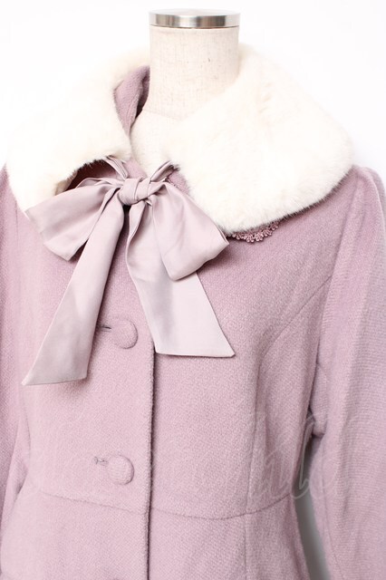 axes femme POETIQUE / 裾レースデザインコート ピンク Y-25-12-13-127-AX-CO-SZ-ZY